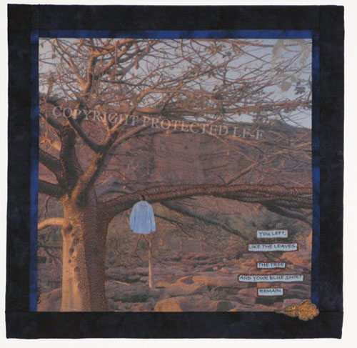 Hand printed, painted, and sewn. Machine printed [images generated and printed by artist], embroidered, pieced, appliqued, and quilted.